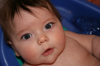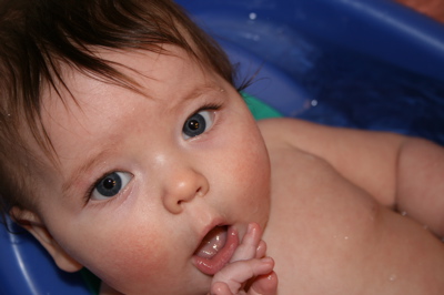 Bathtime is a real workout for Olivia. Lately, she’s been splashing so much that half the water will end up on the counter and floor, so we’ve started to put her baby tub into the larger tub to accommodate the overflow.