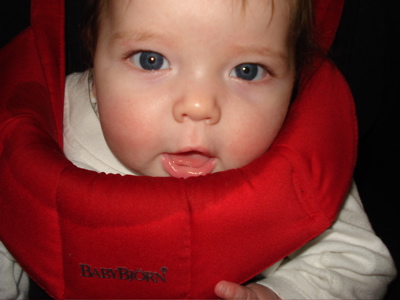 The Bjorn is fantastic–it keeps the baby (and the drool) contained!