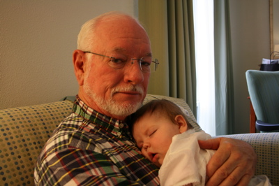 I should also have said that whatever chaos kids cause, they don’t just redeem themselves in the eyes of their grandparents–I think they have that effect on us all! I am completely devoted to Ava and Olivia (and Leo and Wyatt, of course) even if I seem occasionally shocked at the amount of patience child-rearing requires 🙂 I can’t stop laughing about the goofy look on Ava’s face when she was mimicking dad’s hankie trick and about Olivia’s grunt-laugh. They are so sweet, adorable, and hilarious. You are a lucky mommy and daddy!