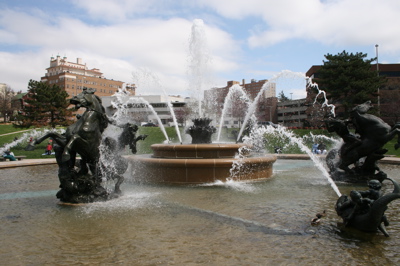 Friday night, we had dinner on the Country Club Plaza, an area famous for upscale shopping and gorgeous architecture. We (quickly) checked out the Nelson-Atkins Museum of Art on Saturday morning–we discovered it’s not a great place to linger with small children.