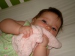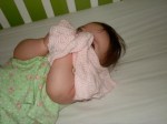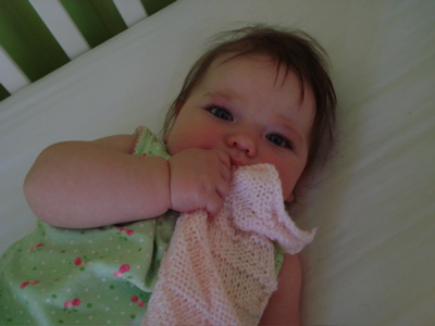 I mentioned that Olivia really loves to snuggle up to blankets or other soft things as she’s falling asleep–not exactly the safest habit ever. I usually let her have something until she’s out, then I snag it from her crib so it doesn’t pose a danger later in the night.