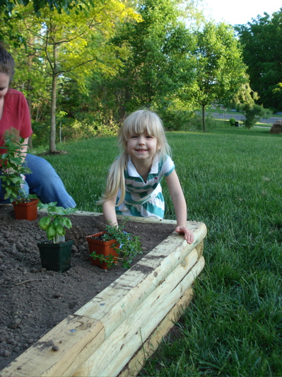 Then, last night, we put in the bedding plants and seeds, with a little help.