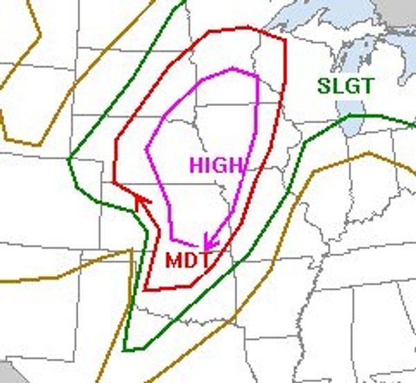 This map is from an interesting weather blog at a Kansas City NBC affiliate. It still sounds like we’re in for some serious storms, and it will be fascinating to see how they develop.
