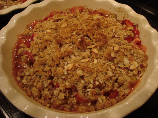 I hesitate to fully endorse this recipe for strawberry rhubarb crisp with cardamom and nutmeg. While I thought it was fantastic, I brought home half of what I took to work, and Bryan passed it off as “too sour.”
