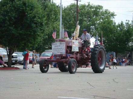 One of the many signs on this very old implement read, “Happy birthday, America.”
