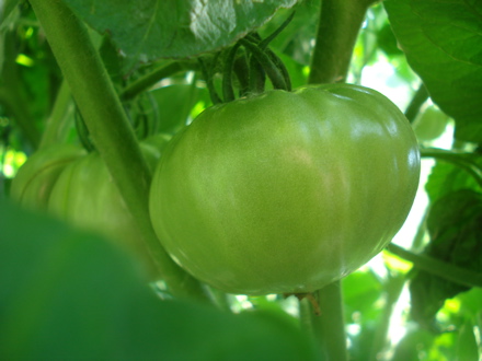 There’s a good chance this is actually a green heirloom tomato. Either that, or it’s just not ripe. I have no idea. I really should have labeled the plants.