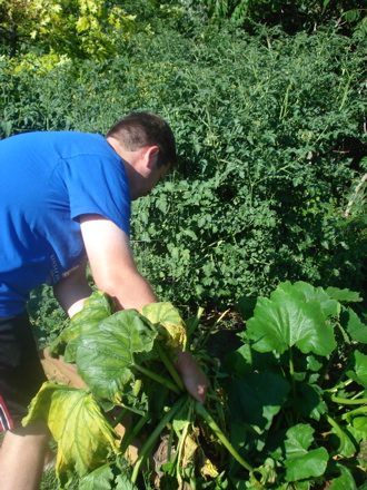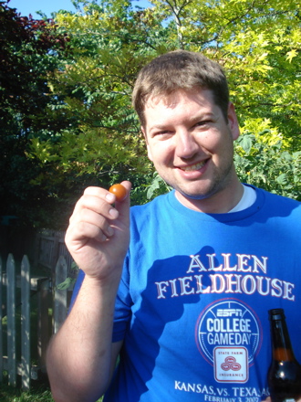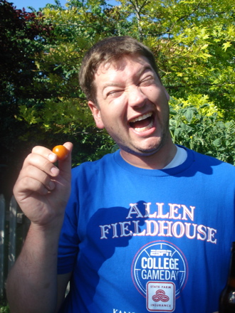 Bryan was really, really thrilled to find the first red tomato.