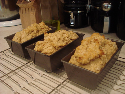 Some might argue that this is a waste of a perfectly good bottle of brew, but I recently tried a new beer bread recipe from Epicurious. There’s only a handful of ingredients, no kneading and no rising time. What could be better?