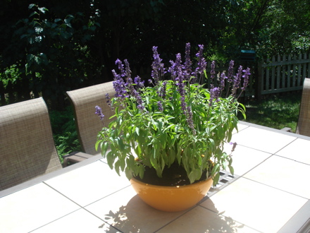 And, I found a sunny spot (and a sunny pot) for the salvia.