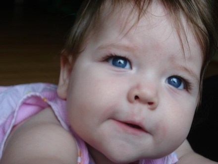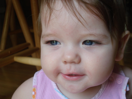 I took Olivia in for her nine month well baby check this morning. She weighed in at 22 pounds and 12 ounces, putting her in the 98th percentile. She was 29 inches long, which is the 96th percentile, so at least she’s proportionate!
