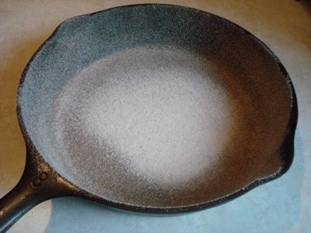 There’s a gorgeous German Apple Pancake on the cover of this month’s Cooking Light. It’s an interesting recipe–you start by coating the bottom and sides of a cast iron skillet with sugar, nutmeg and cinnamon.