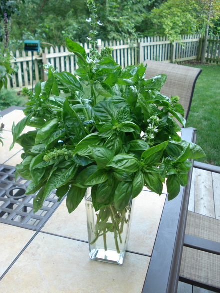 I thought the basil would stay fresher in water, so I set the cut branches in a vase. I almost put this “bouquet” on my desk, but I couldn’t decide if it was avant-garde or just plain strange. If you spot this in Living next month though, remember that you saw it here first.
