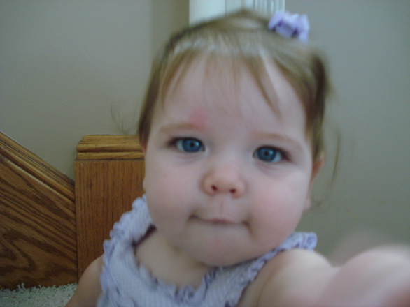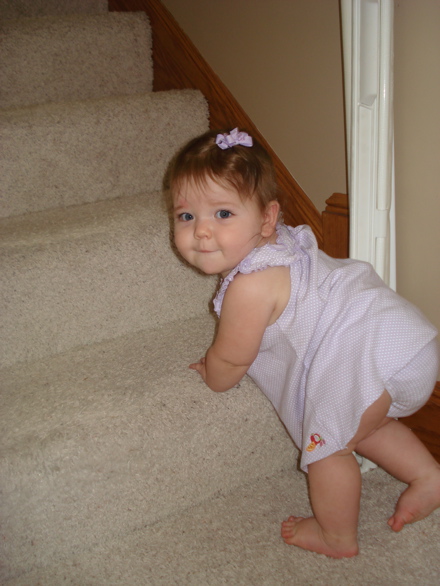 I think she might be starting to cruise. I haven’t seen her in action, but I’ve noticed that she’s moved from one end of the sofa to the other pretty rapidly a couple of times. I don’t know if she’s dropping down to crawl and then pulling herself back up again, or if she actually is walking along the side. I guess we’ll just have to keep a closer eye on her.