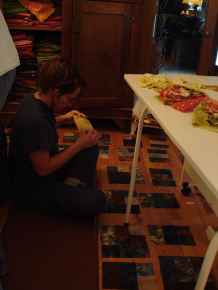 Back at Smiths, we worked late into the night on various projects. I was thrilled to find that I wasn’t the only one who still had work to do on the quilt I started at last year’s retreat. All in all, though, we made progress on a number of projects.