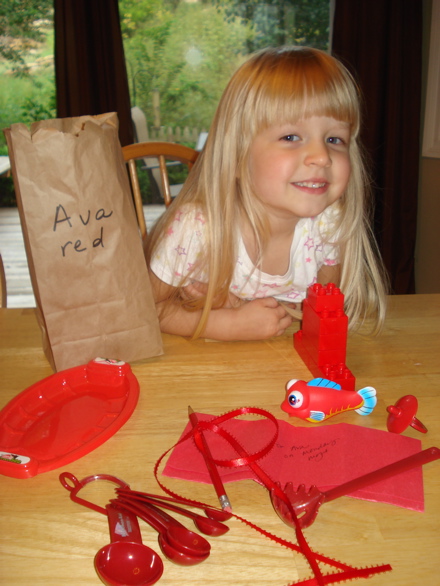 Ava’s preschool teacher sent home a homework assignment along with the note, “All kids love homework.” It’s been a while, but I am pretty sure that’s just not true. Perhaps she’s on to something, though, because as Ava completed her assignment (filling a little sack with things that are red), she grew more and more excited.