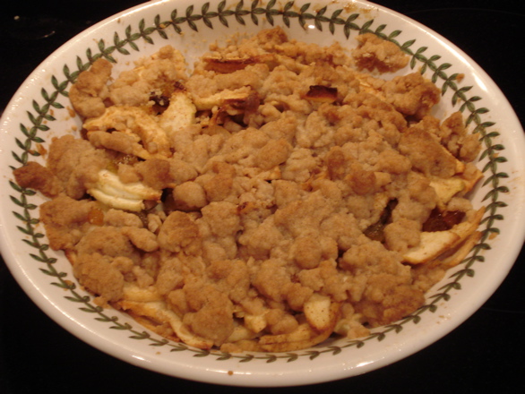 The same night, we made a spiced raisin apple crisp to share with Dawn and Brandon: