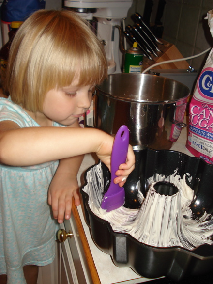 My favorite apple recipe so far is the spice cake with cider sauce, which I took to work on Monday. I didn’t have the correct pan, so I used a Bundt pan. We “painted” it with baker’s grease, a concoction of oil, Crisco and flour, and the cake slid out so easily I nearly dropped it on the floor. Quite a change from last time!