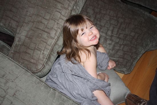 I bought a soft grey cardigan this weekend. Olivia swiped it from my shopping bag and claimed it as her own. She’s been toting it around like a (fourth) blanket. I just might have to get another one for me!