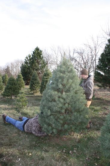 So, at my friend Dawn’s suggestion, we hit up a local tree farm after the Christmas parade last Saturday. We rode a hay rack out to the field, something that thrilled the girls.