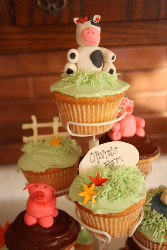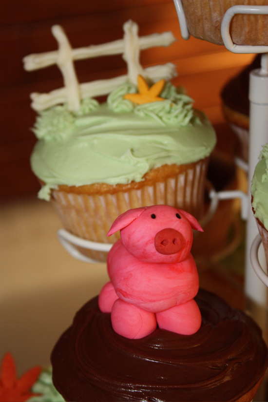 I made these barnyard cupcakes for Olivia’s birthday. This was the first time I’ve attempted a project like this, and it was definitely a good learning experience. I used a product called gum paste, which I found to be a bit difficult because it dries very quickly and can crack easily. If I do something like this again, I might try marzipan or fondant.