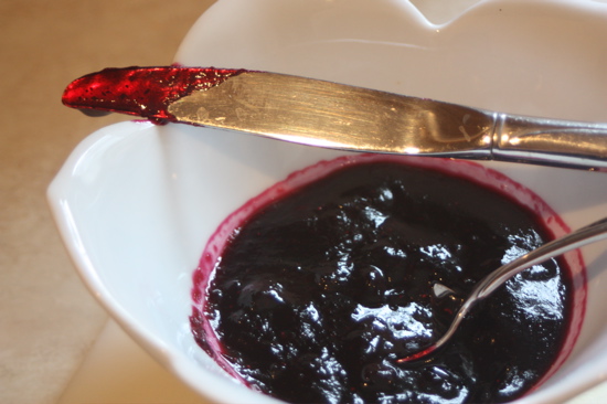 Thanks to the holiday yesterday, Ava, Olivia and I had some free time to spend with my friend Dawn and her kids. Dawn brought the ingredients for blueberry jam, a perfect project for the afternoon. As she noted, I have no idea where they are growing blueberries this time of year, but they are gorgeous. I promise to buy local come summer…