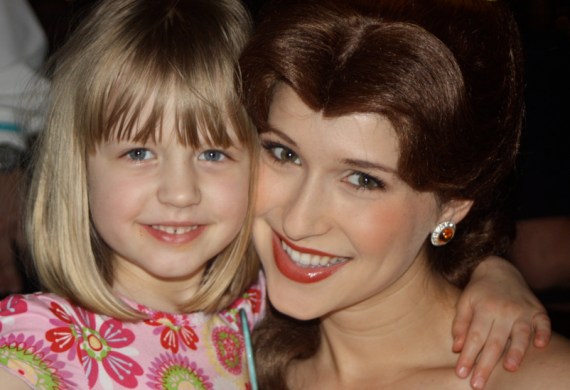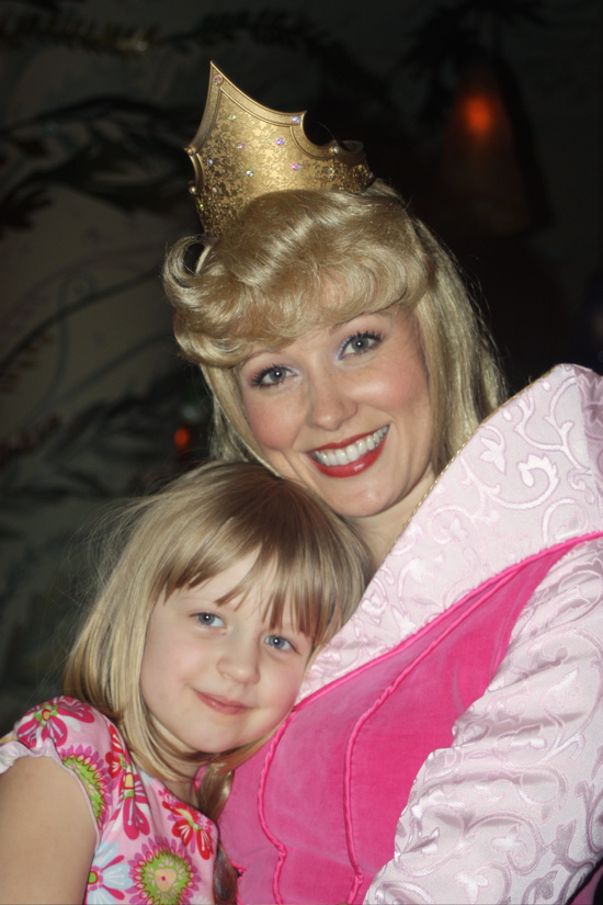 Olivia loves Sleeping Beauty, and she was happy to give her a big hug, too. (Never once did I see any of the princesses recoil upon being accosted by a toddler with extremely messy hands. Impressive.)