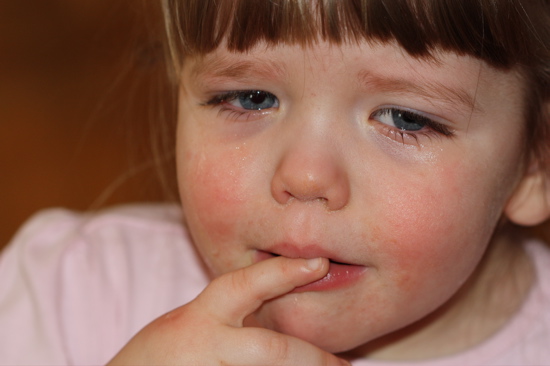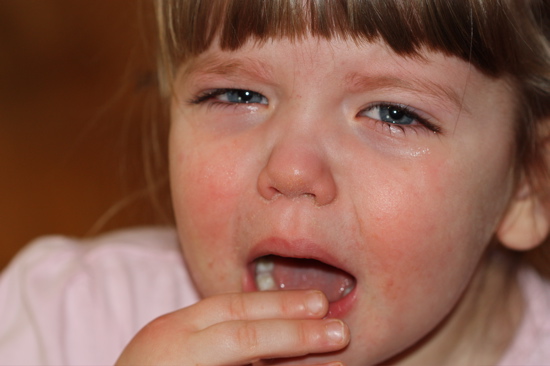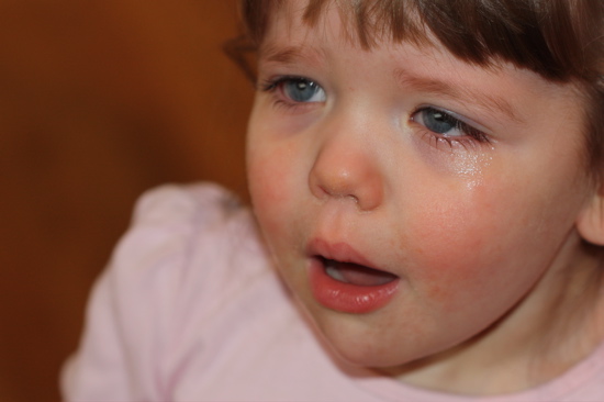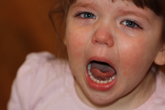 Don’t let her fool you—it’s not that bad. We just snagged her pacifiers and told her she could have them back at bedtime.