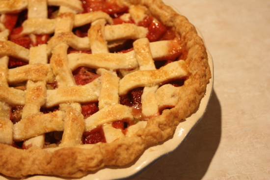 Come to find out, that’s not a good thing… I lopped it off, and thankfully, the plant continued to produce enough stalks to make a batch of Rhubarbritas (that recipe coming soon), and this Strawberry-Rhubarb Pie from Bon Appetit. I substituted cardamom for cinnamon, because it’s awesome, and also because I like hearing Bryan say, “What’s that weird taste?”