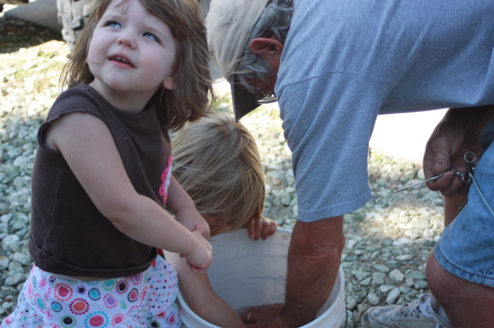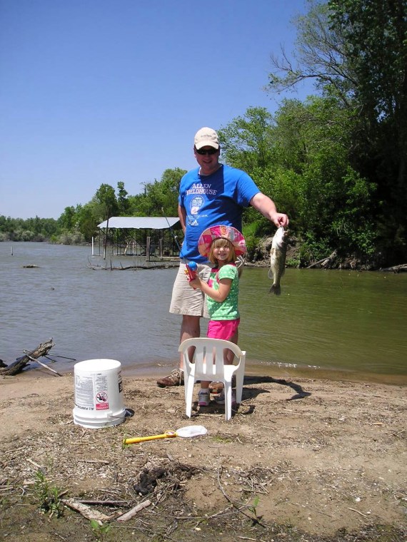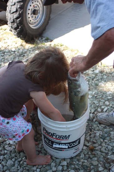 Using a Little Tykes fishing pole and a minnow, she caught a catfish . . . then a largemouth bass, and a drum, and then a carp.