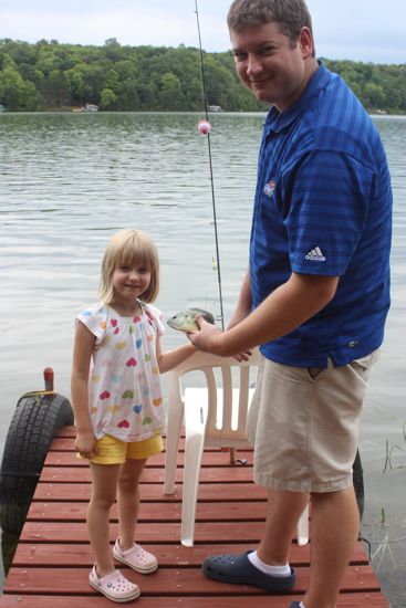 Bryan spent a bulk of his vacation fishing, which I think is a sign that I’m just that much closer to convincing him that we do indeed need a boat. In the meantime, though, he had a blast catching sunfish and bluegill off the dock with the girls. I’m not sure who decided that every fish needs a kiss before it goes back into the water, but all involved oblige.