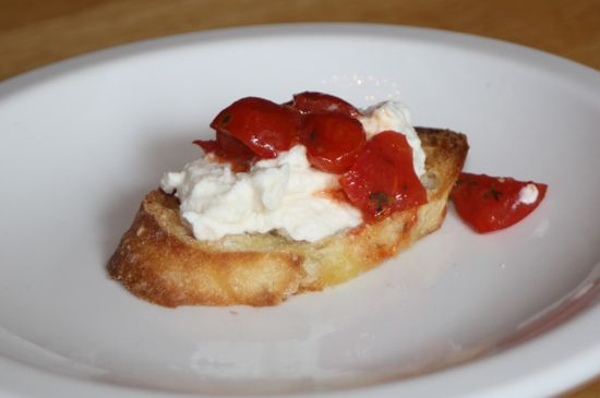 Last weekend, I was searching for an appetizer that would showcase garden cherry tomatoes. I found this recipe for Ricotta with Roasted Cherry Tomatoes on Crostini on Martha Stewart.