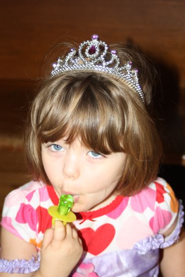 The five year old next to me added, “Well, at night, yes, but also in the morning, and on the way to Diane’s, and after Diane’s, and at home, and really, Mom, she uses a pacifier ALL THE TIME.”