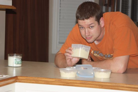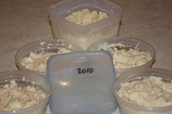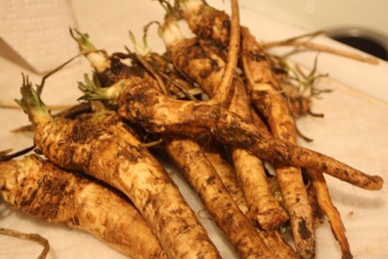 Every two years, Gramma and Grampa dig and process horseradish. This year, Bryan helped with the digging, and the grandparents sent some roots home with him to process on his own.