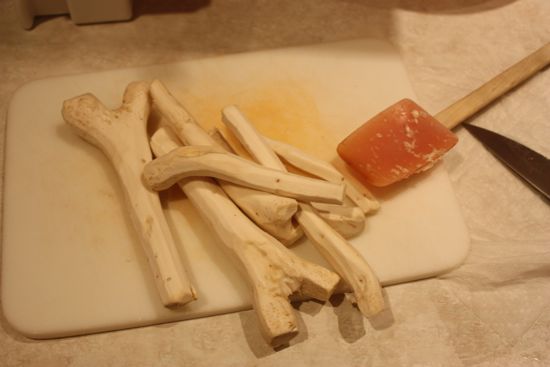 So, late one night last month, he set to it, taking photos of the task along the way. Here are the pre-processed roots, which he had soaked in the garage for a few days prior.