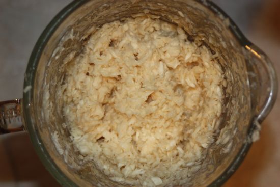 From Bryan: I blended the horseradish with some water (just enough to allow for blending) and a pinch of salt. After blending, I let it sit 10 minutes (I read on the internet that the longer it sits, the hotter it gets, up to a point). Two to three minutes was recommended for mild, about five minutes for medium, and eight minutes for hot. Ten minutes seemed about right to me. After that, I added some white vinegar to get the consistency right.