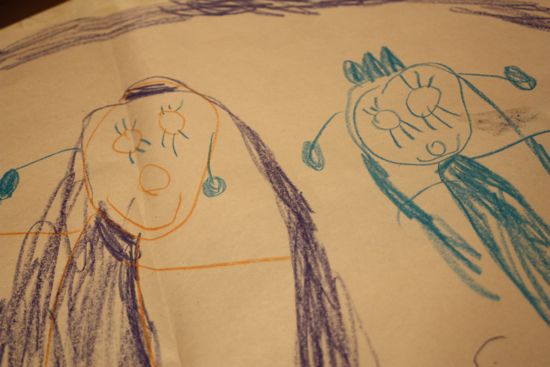 This was a big relief to us, because at home, she’s been a little, well . . . unhinged. We’ve attributed the cranky behavior to the new environment and change of pace, and we’ve tried not worry much. But, when she brought home the teacher’s worksheet from one of her classes (a benefit of her member-of-the-week status), we had to laugh at the word she had selected to describe “apple”–it seemed right on point: