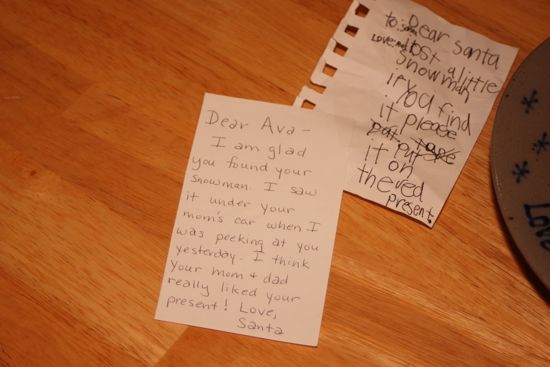 Thankfully, Bryan found the ornament under the car in the garage on Christmas eve—she must have dropped it on her way in the house. We tucked the note away, but Santa found it and left a short response, much to sweet Ava’s surprise.