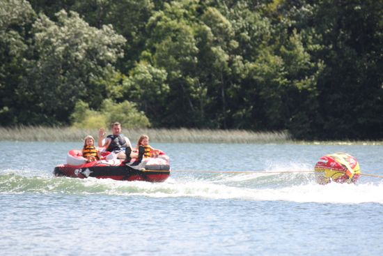 Bryan, Ava and Olivia heading out with lake neighbors Dennis and Jody…