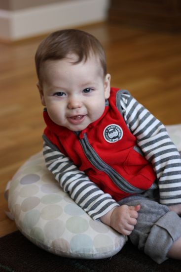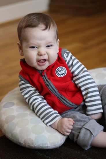 Owen most definitely prefers to be held, but instead of snuggling much now, he’ll reach to touch your face, and then bounce up and down as you hold him on your lap. It’s almost as though he’s struggling to move faster and farther–I keep reminding him that he’s a baby, and he needs to stay close to his mama right now. Nevertheless, I can definitely feel him pulling away, and before long we’ll be chasing after him (probably through a house that isn’t quite yet ready for a a baby on the run). This reality is surprisingly sad for me, but I am trying to focus instead on the fun to come.