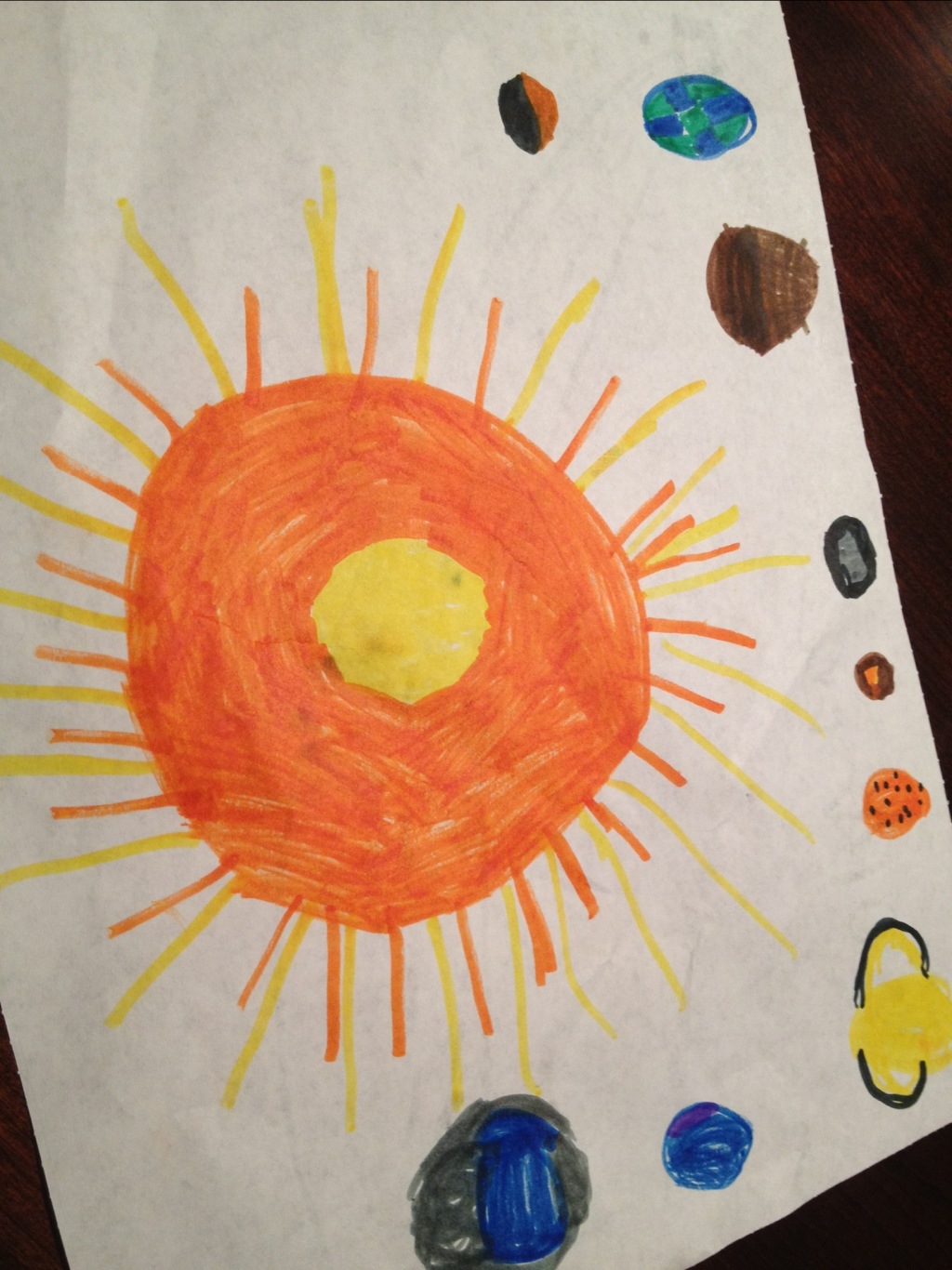 Olivia: “Do you want to see my picture of outer space? That’s the sun in the middle. It brings joy to the whole wide world.”