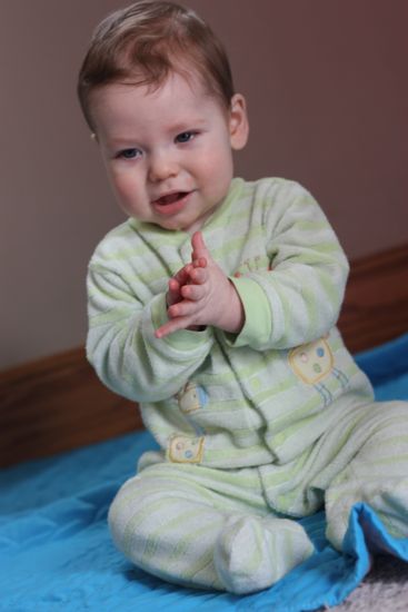 In addition to that supercute clapping below, Owen’s bobbing his head to music, doing a bit of “singing” of his own, sleeping soundly for at least 11 hours each night, and keep us pretty entertained the rest of the time.