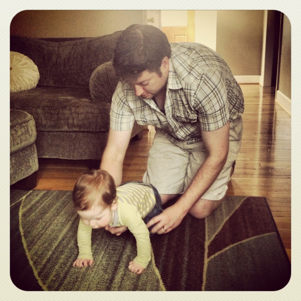 Last weekend, when Owen was struggling with an ear infection, eczema outbreak and four(!) new top teeth, we plopped our cranky baby in the kitchen sink. It worked beautifully, Gramma!