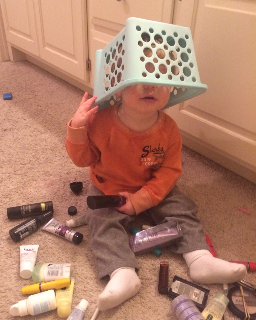 He really is helping! Half of the job of reorganizing is already finished! Now you just have to put everything back.