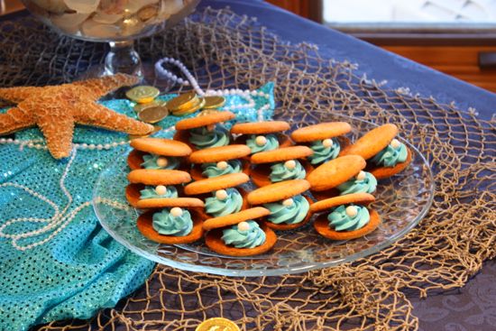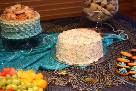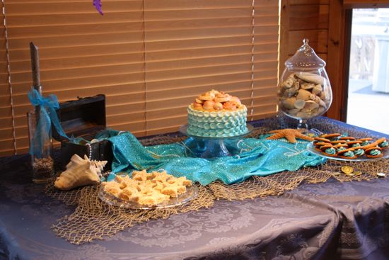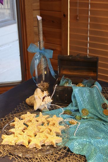 We decorated with seashells from Grampa Great’s collection, as well as treasure chests, pearls and other items from Mom and Karyl.