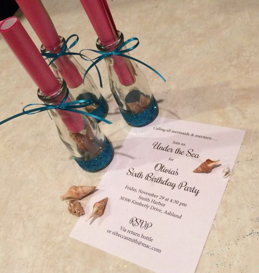 We sent invitations tiny messages in little bottles. US mail yielded faster delivery than water transport.
