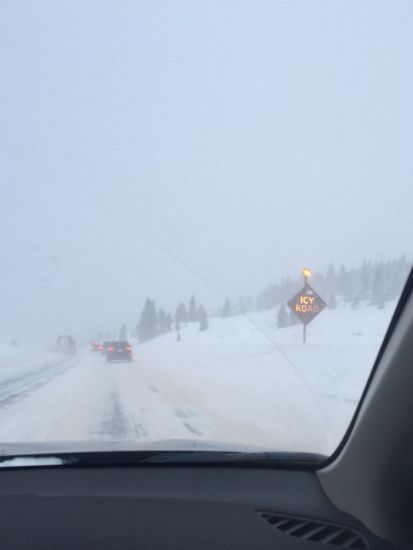 We hoped to make the trip in about four hours, but our Denver-based friend David said it could be quite a bit longer. As we moved into higher elevations, we found pretty intimidating conditions. (I’m sorry, Mom, I lied when I said the roads were fine…)