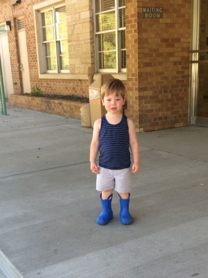 Owen, as I came at him with a washcloth: “Away go! Away go!”