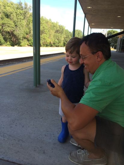 On Sunday, Uncle Tom noticed the Amtrak train was running about 12 hours behind, so instead of arriving at 5:45 am, the schedule was much more reasonable for a visit by his train-obsessed nephew. It proved to be further delayed, but Tom and Owen watched videos of train arrivals to pass the time as we waited at the depot downtown.
