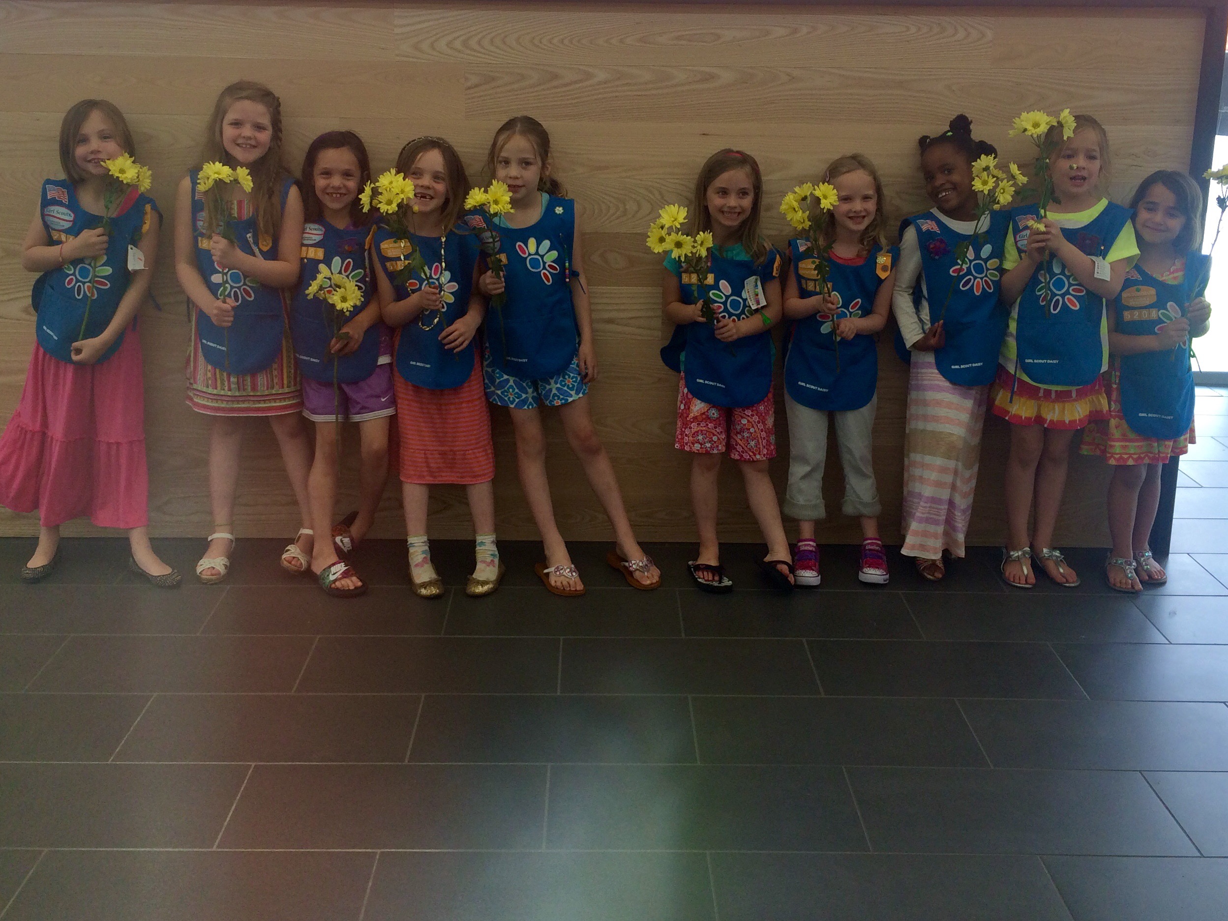 Olivia partcipated in a bridging ceremony for Girl Scout today–she transitioned from a Daisy to a Brownie, along with several sweet friends.