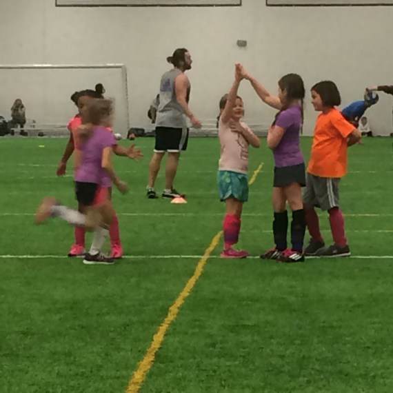 While she insists she’s terribly nervous about the prospect of never scoring a goal, you’d never know it. She literally skips between exercises and doles out high fives left and right.